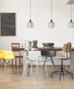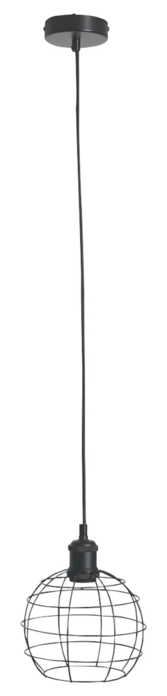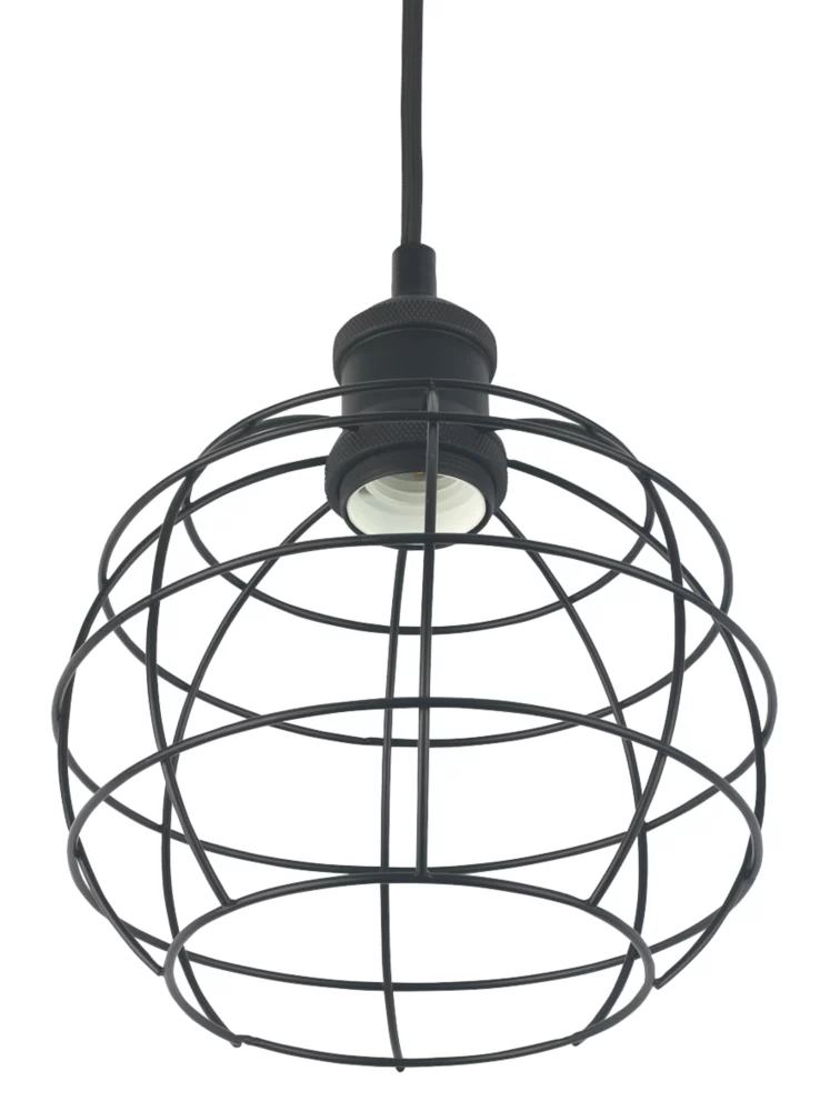 Decorative black birdcage shaped pendant with fully adjustable 1.5m fabric cable allowing for varied installation height. Ideal for kitchen areas and living spaces.