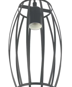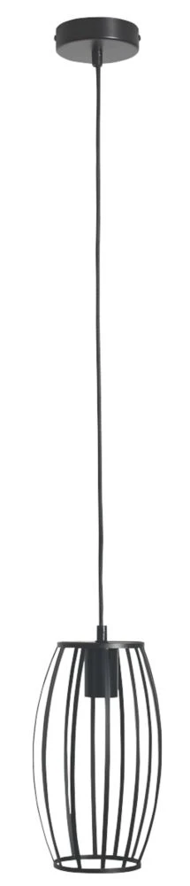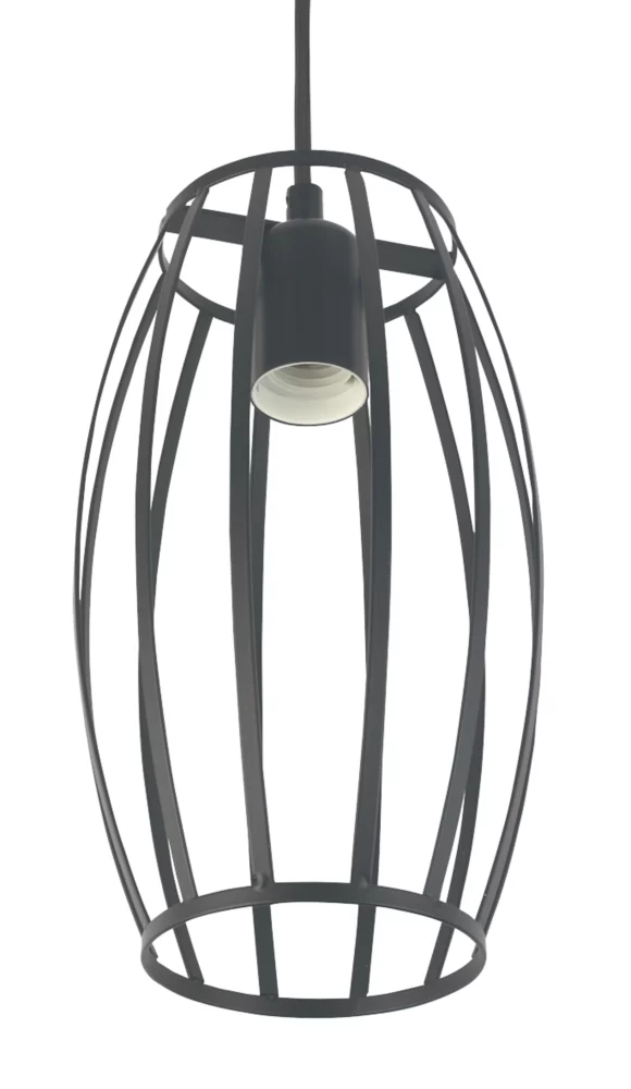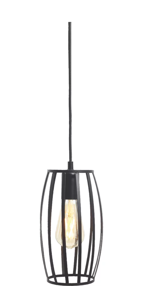Decorative black pear shaped cage pendant with fully adjustable 1.5m fabric cable allowing for varied installation height. Ideal for kitchen areas and living spaces.