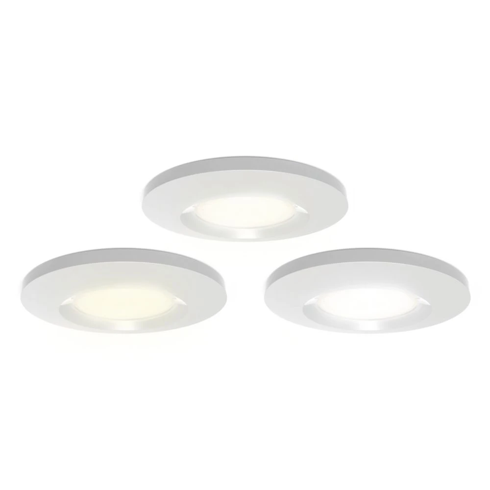 Dimmable, fire-rated downlights. Feature integral driver with push-fit, loop-out terminals for ease and speed of installation. Fully tested for 30, 60 and 90-minute ceiling types. Integral switch offers selection of colour temperature in 3000, 4000 or 6000K.