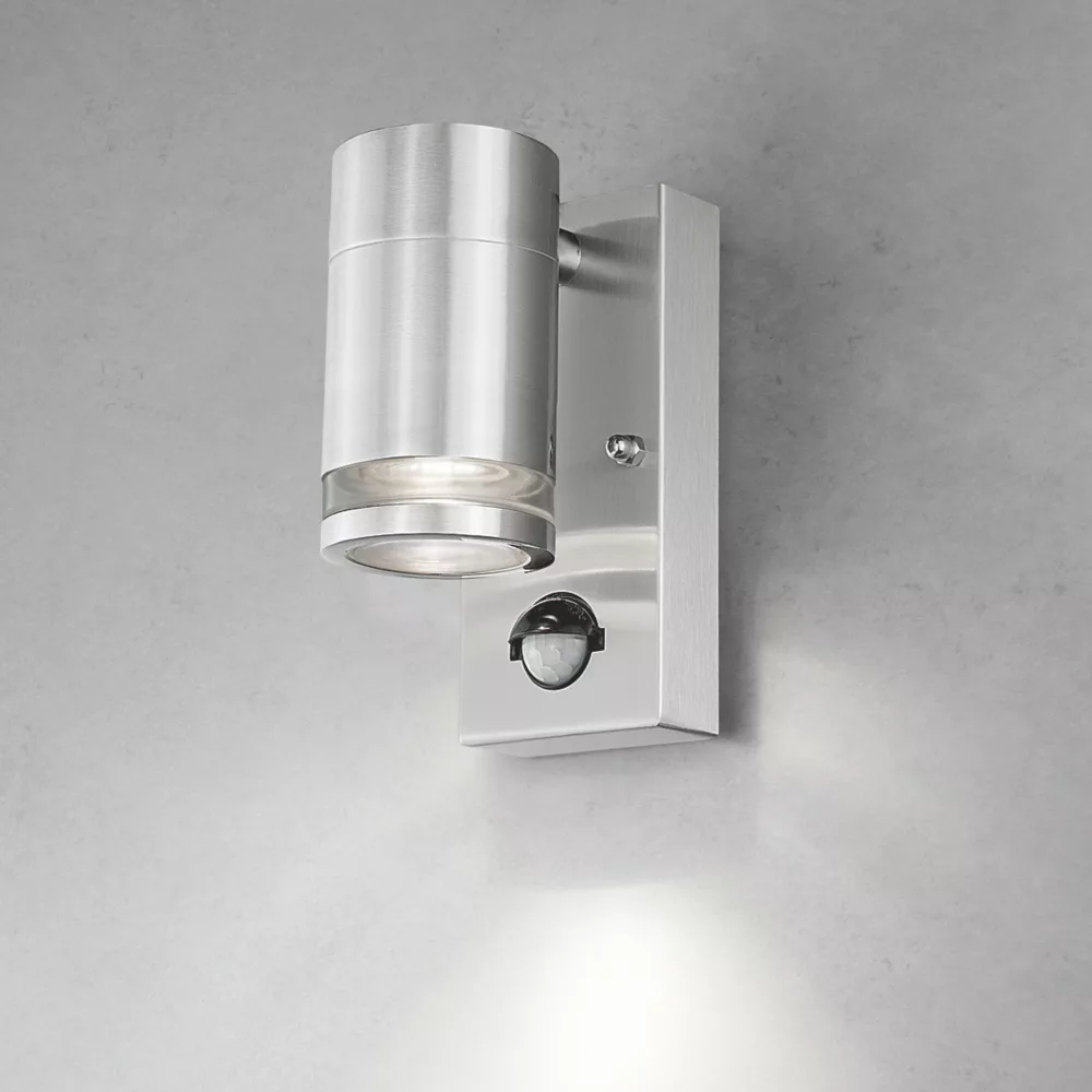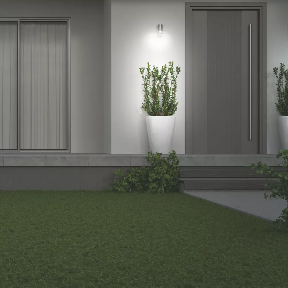 Modern design. Stainless steel with tempered glass lens. Suitable for residential applications.