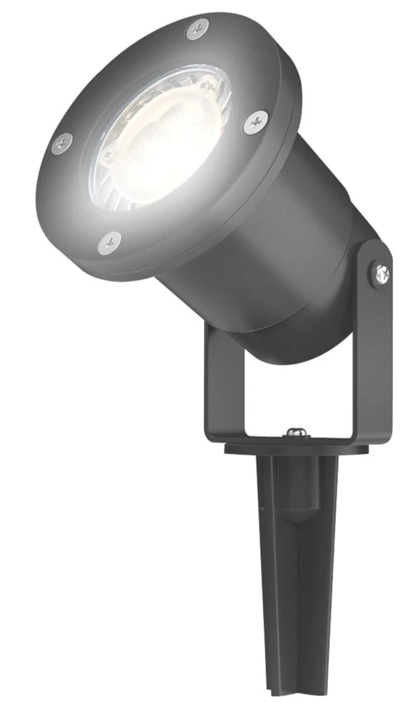 Multipurpose garden spotlight with powder coated die-cast aluminium body ensuring maximum endurance. Pre-wired with 2 metres of rubber insulated cable. Supplied with wall mounting bracket and spike.