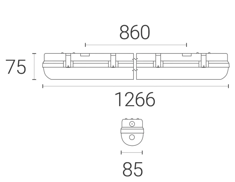 Polycarbonate body. Luminaire fixing clip design provides option of mounting onto a BESA box. LED performance allows point-to-point replacement of existing fluorescent luminaires.