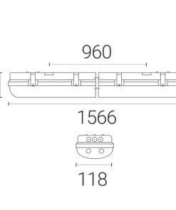 Polycarbonate body. LED performance allows point-to-point replacement of existing fluorescent luminaires. Light fixing clip design provides option of mounting onto a BESA box. Output exceeds performance of T8 and T5 fluorescents. Lockable heavy-duty stainless steel clips supplied.