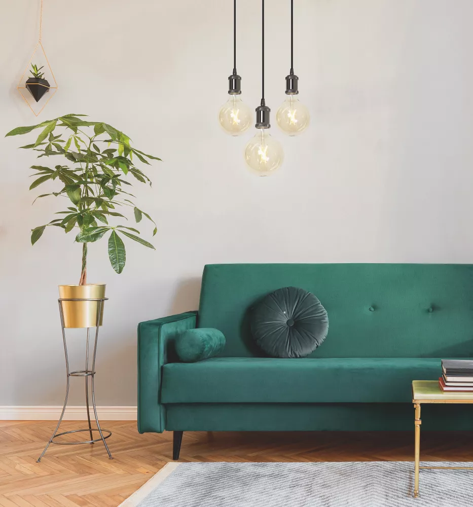 Decorative 3-way circular pendant with 3 x WiFi Smart LED Globe Lamps. Enables user to choose different shades of whites. Dimmable via the WiZ app. Added functionality includes setting schedules, providing added home security and night lights.