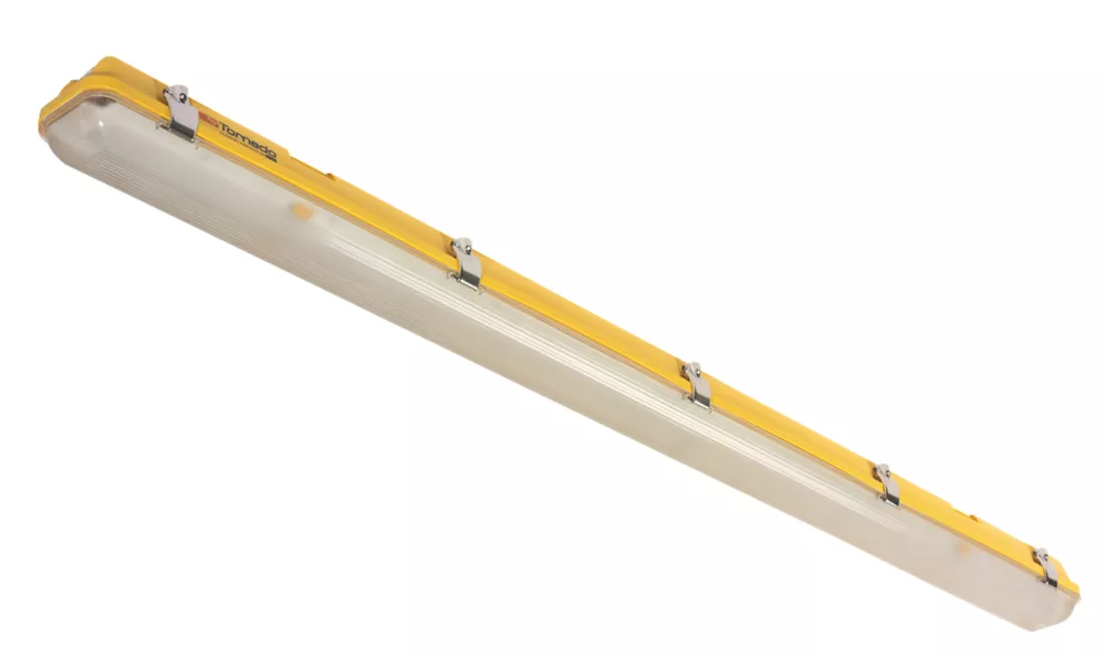 Polycarbonate construction. Allows point-to-point replacement of existing fluorescent luminaires. Unique fixing clip design allows option of mounting onto BESA box. Supplied with lockable heavy-duty stainless steel clips.