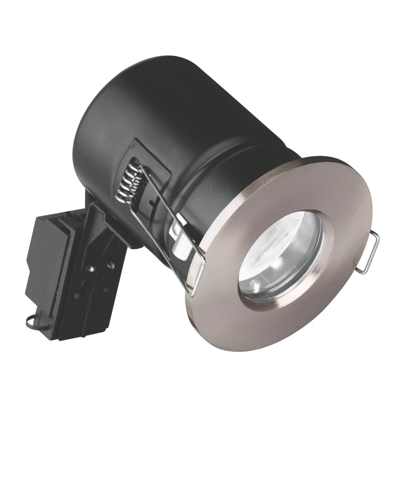 Integrated intumescent material completely seals the downlight and cut-out in the event of a fire.