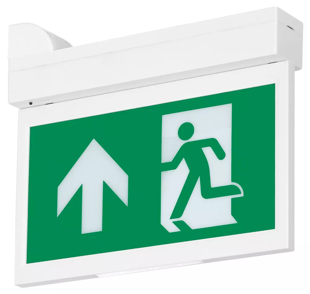LED emergency drop-down exit blade with 3 hours emergency back-up duration. Maintained.