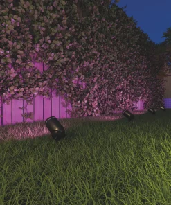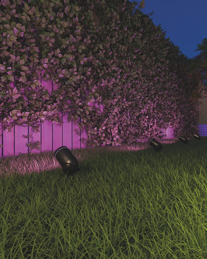 Smart garden spotlight with modern design and built-in LED. Offers easy installation via the Calex app. Features over 100 colour options, adjustable white light and instant dimming. Dual-use with option of ground spike (included). Bluetooth Gateway required for operation (sold separately).
