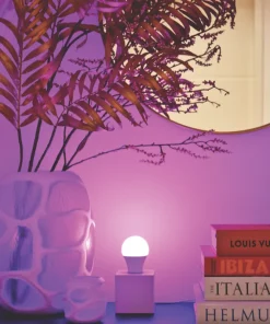 Smart light bulb works on a normal wall switch without an internet connection (not suitable for use with dimmer switches) and also Wi-Fi. Once connected to Wi-Fi, colour and white colour temperatures can be changed through more than 100 variations and timers can be set via the Calex Smart remote control and free app. Dimmable via app and remote control. Can be connected with smart home assistant speakers for voice activation.