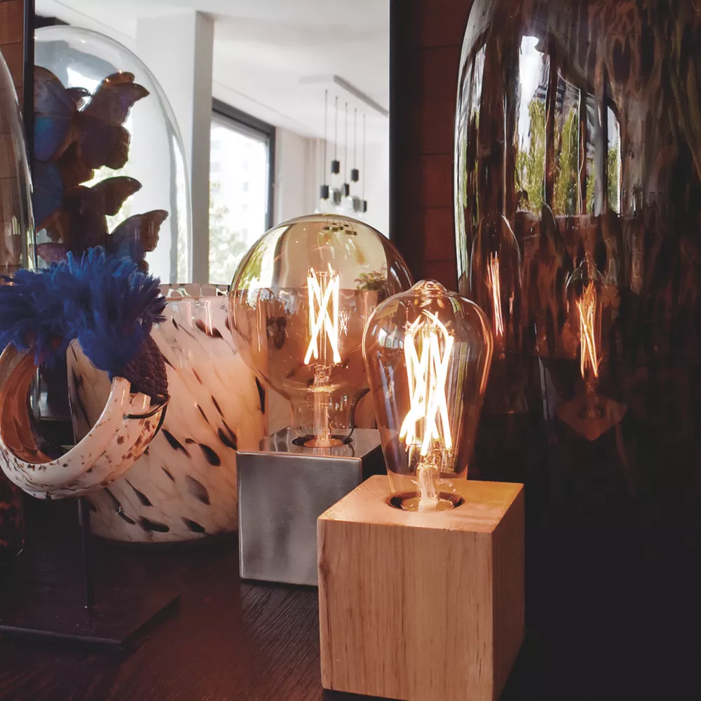 Works on a normal wall switch and via WiFi, not on a dimmer switch. Offers control via Calex remote control or the Calex app. Set individual requirements for timers, adjustable routines and ambience via WiFi. Gold-effect for a timeless look.