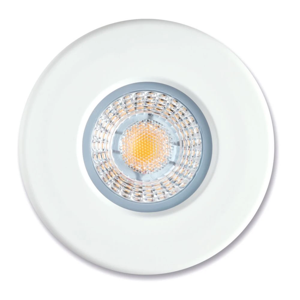 Integrated fire rated downlight. Fully dimmable with a removable matt white bezel.