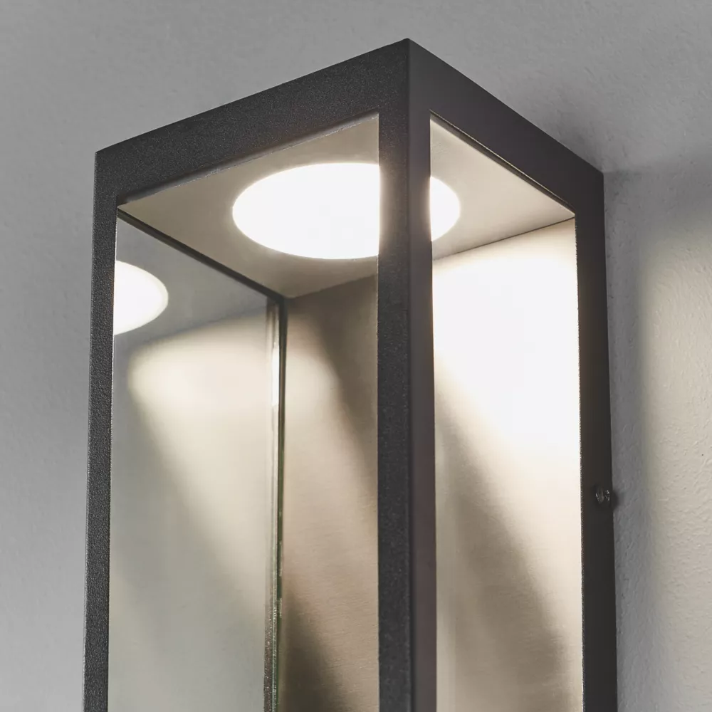Smart, contemporary outdoor lighting choice. Clean-lined, matt black box lantern with integrated LED.