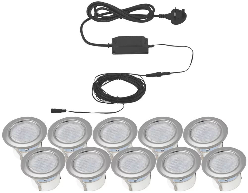 Stainless steel and polycarbonate. Contemporary design. Ideal for decking areas, walkways and other outdoor areas.