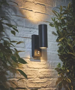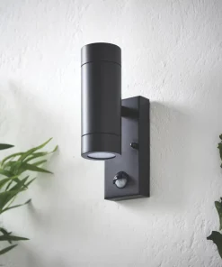 Stainless steel construction. Projects light both upwards and downwards and is fitted with a PIR sensor.