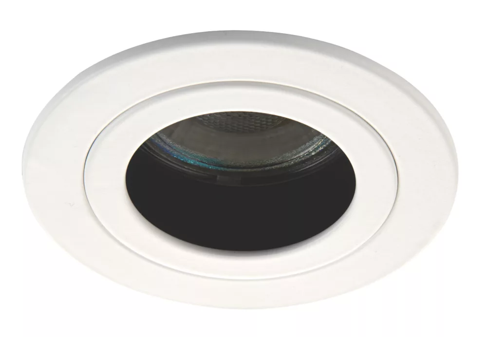 Recessed downlight featuring an anti-glare baffle with minimal bezel. Reduces glare by having the light source set back within the downlight structure, which avoids direct human eye contact. Can be used with a GU10 LED lamp.