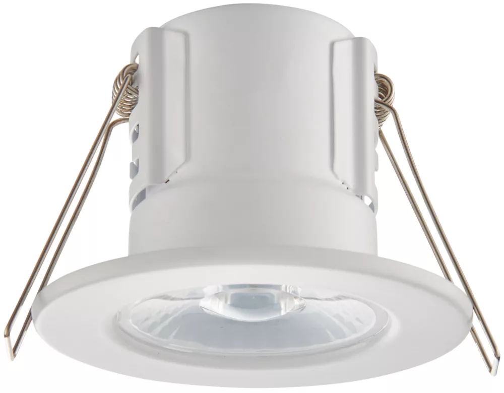 Dimmable fire rated integrated LED downlight. Quick, tool-free installation due to the 4-way push-fit screwless terminal block (supplied). Ideal for domestic use.