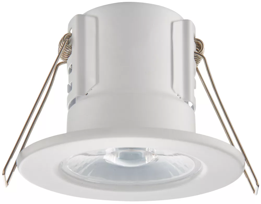 Dimmable fire rated integrated LED downlight. Quick, tool-free installation due to the 4-way push-fit screwless terminal block (supplied). Easily fitted using a standard 57mm holesaw.