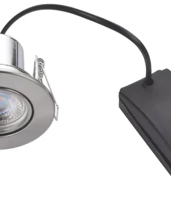 Tool-free and quick to install due to the 4-way push-fit screwless terminal block. Features anti-glare 60° lens and tilting bezel, allowing adjustment of up to 30°. Ideal for domestic use.