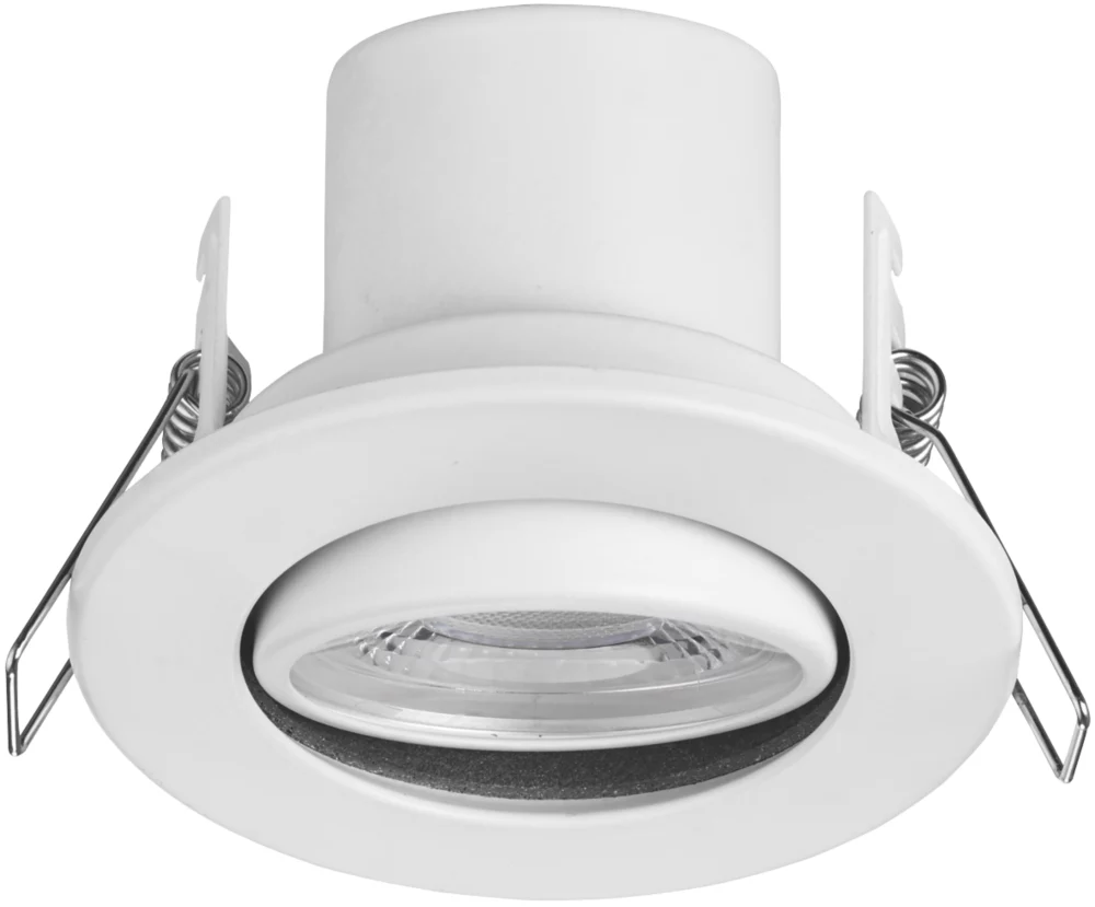 Dimmable fire rated integrated LED downlight. Quick, tool-free installation due to the 4-way push-fit screwless terminal block (supplied). Ideal for domestic use.