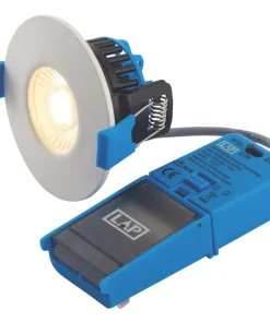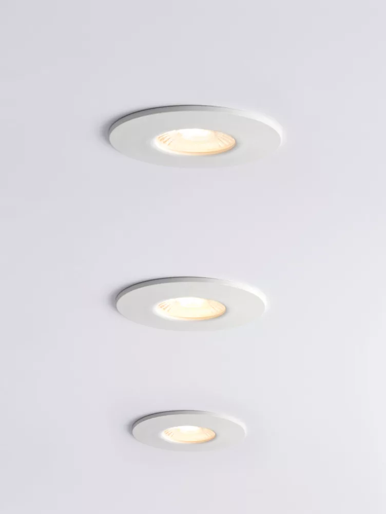 This fitting comes with a 2-way ‘Plug and Play’ connector which allows users to loop in and out. The connector allows for easy removal of the fitting during wiring, painting and decorating and has a simple 3-way switch which allows users to choose between 3000K, 4200K or 6000K. Other features include: the option to be covered with insulation, fits into shallow ceiling voids, IP65-rated, and fully fire-rated for 30, 60 and 90-minute ceilings. Bezels can be easily removed or added by twisting on and off.