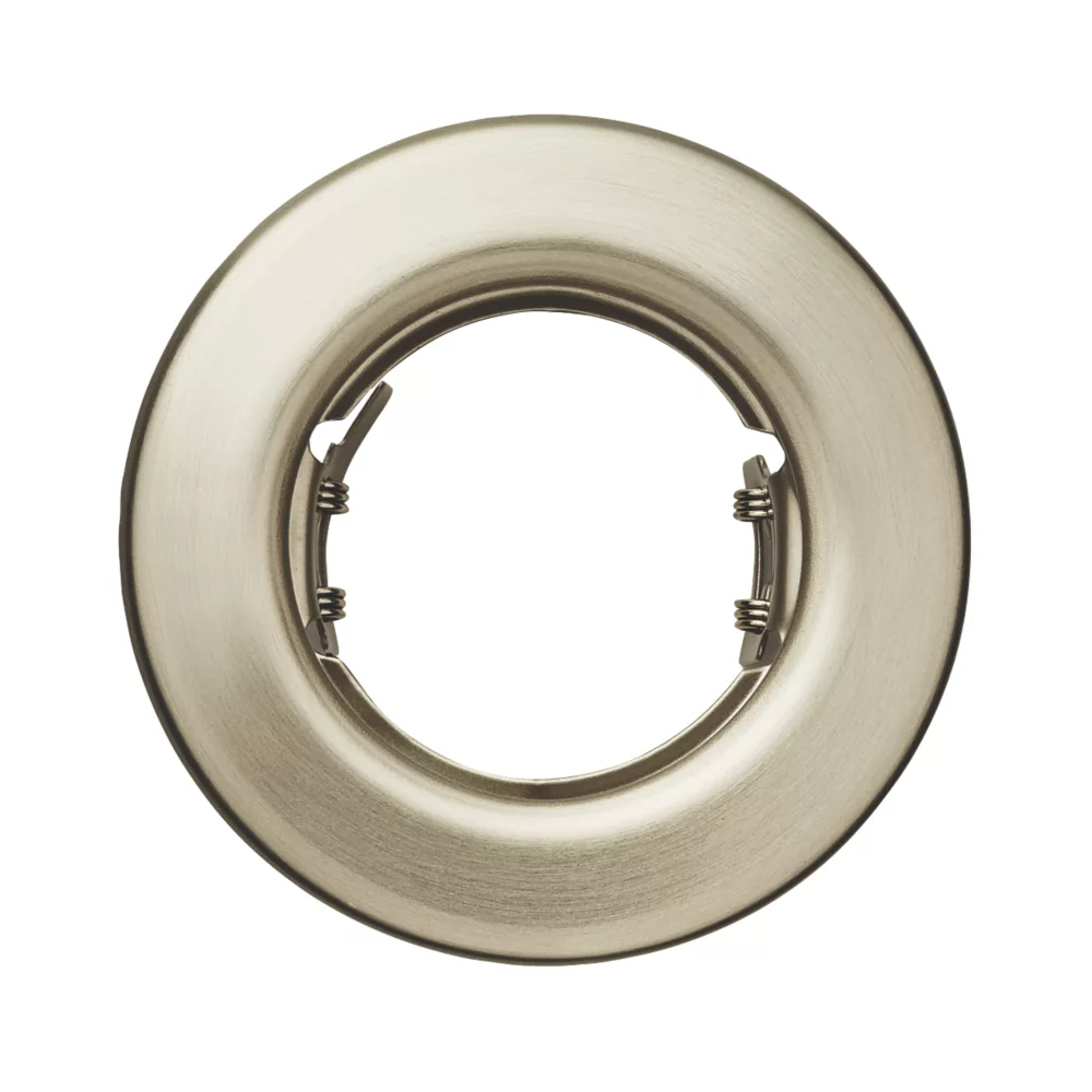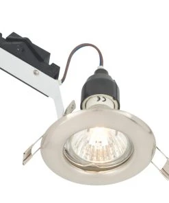 A fixed, brushed chrome-effect downlight. Suitable for mains voltage.