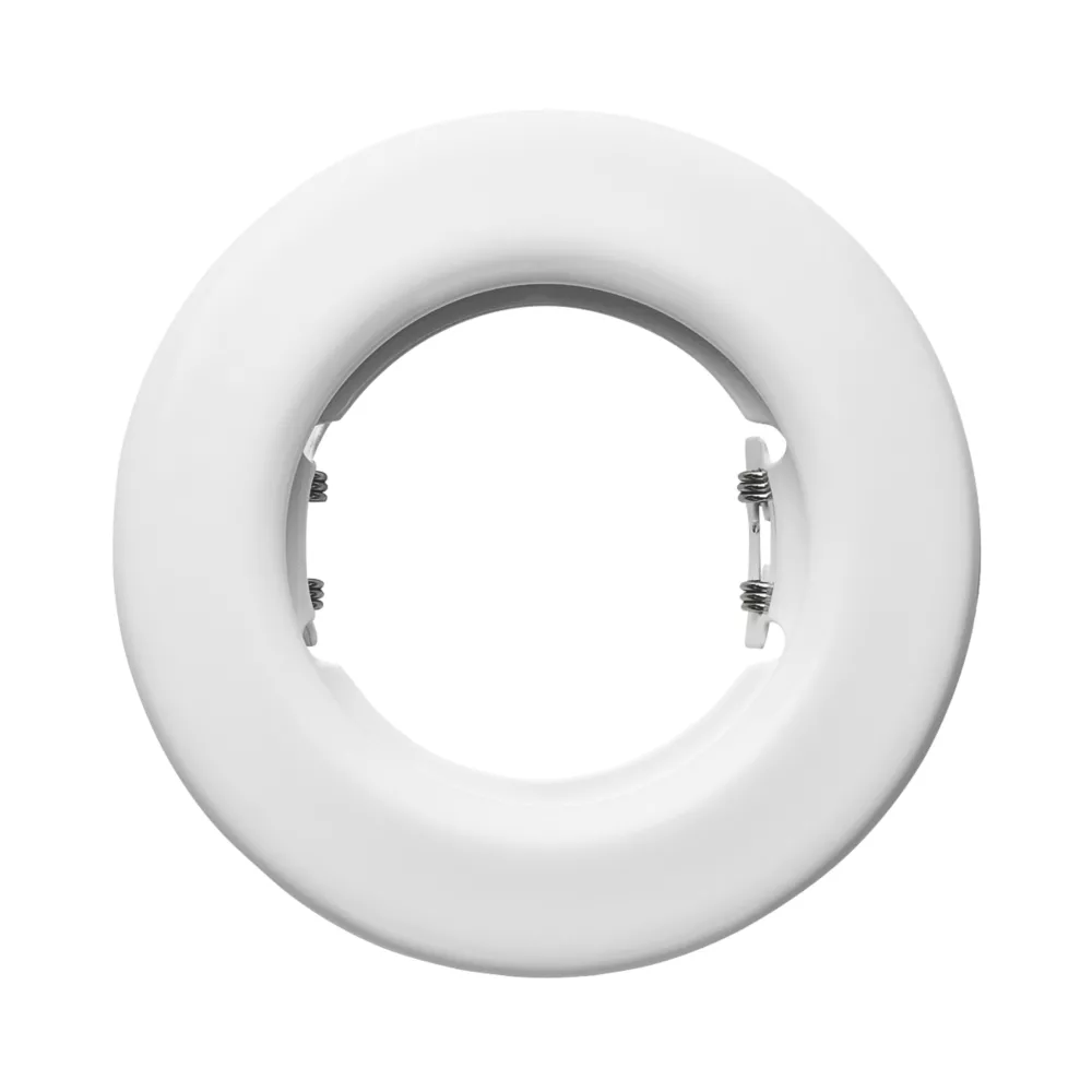 A fixed, gloss-covered white downlight. Suitable for mains voltage.