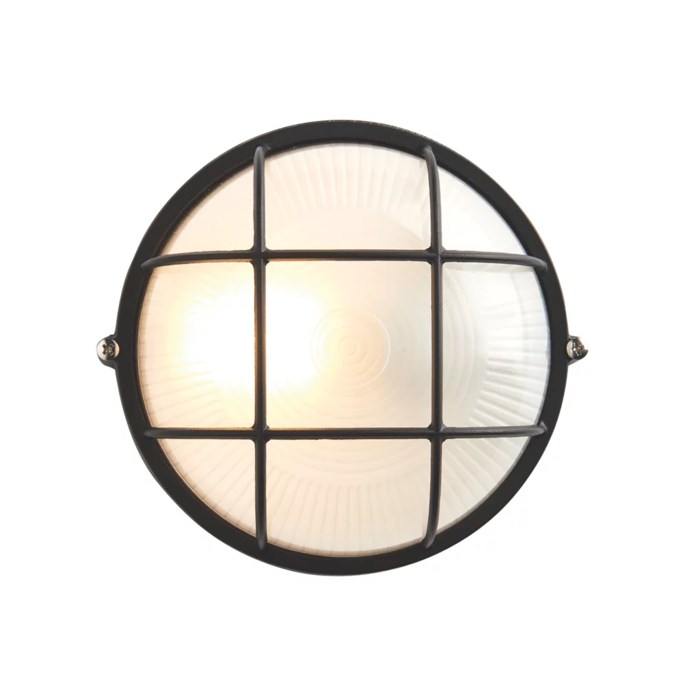 Fully gasketed die-cast aluminium body and an attractive frosted glass diffuser with die-cast grid-style cage.
