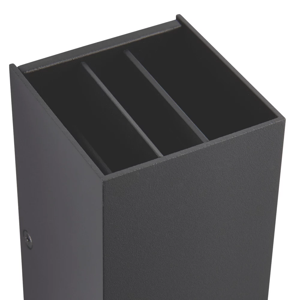 Die-cast aluminium and glass. Modern design. Easily adjustable shutters for stunning lighting effects. Simple to install.