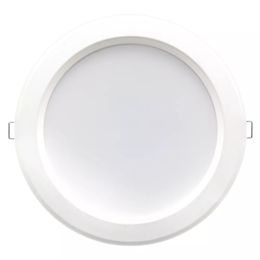 Commercial LED downlight with opal diffuser and white polycarbonate body. With a recessed mount suitable for plasterboard or suspended ceiling systems. Comes complete with loop-in loop-out driver to lower installation time and costs. Gives offices, corridors, and commercial spaces bright and crisp lighting. Also suitable for bathrooms.