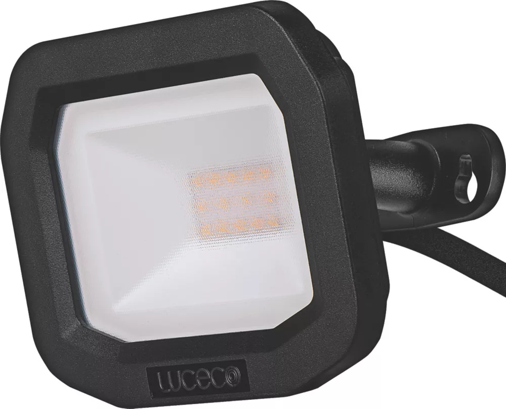 Luceco, slim profile floodlight with swivel and tilt mounting arm for a modern, sleek look. Pre-wired with a HO5RN-F rubber cable (1m). Energy efficiency of 120Lm per watt. Ball joint bracket for increased adjustability and installation options.