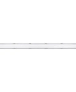 Polycarbonate body and diffuser with low glare opal appearance. Integrated high power LED chips provide efficacy up to 121Llm/cW. Dust and weatherproof rating of IP65, designed for surface mounting applications in industrial environments. Easy and quick-fit installation with the plug and play connected driver, so there is no need to remove gear tray. Used to light up warehouses, garages and workshops, where bright, crisp light is paramount. Ideal for commercial and educational environments. Supplied with stainless steel clips.