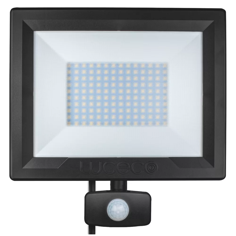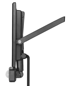 Energy-efficient slimline LED floodlight with PIR motion sensor, detecting movements from distances of up to 10m with 120° range. IP65 dust and weatherproof rating. Suitable for home or workplace exteriors. Saves up to 90% energy compared to traditional halogen floodlights. Fit and tilt bracket offers easy installation. Robust design reduces the need for maintenance.