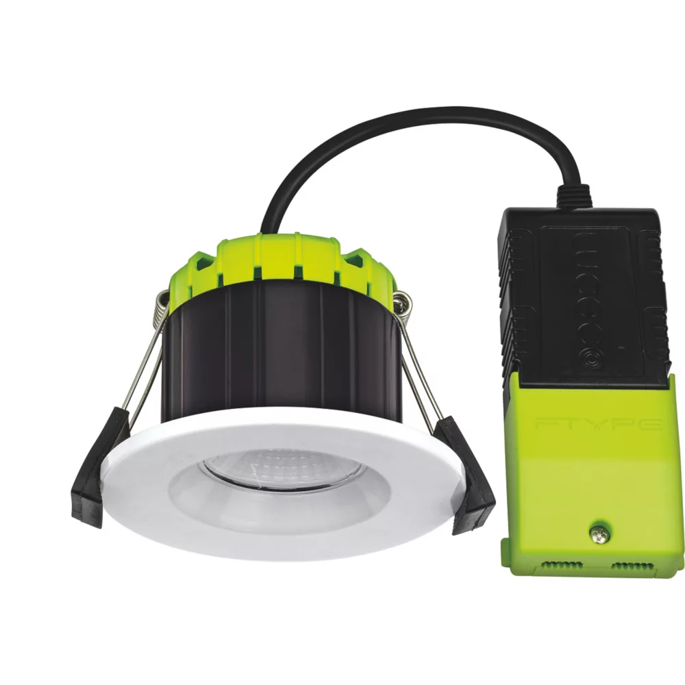 Integrated LED fire rated downlight. Fully dimmable with interchangeable bezel.