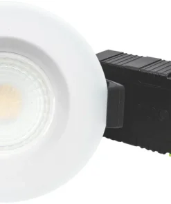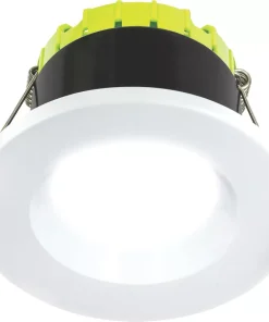 Compact downlight, with baffled anti-glare bezel is designed to fit into shallow ceiling voids. Features a tool-less clip,fit connector block and speedfit loop in and out piano key terminals, suitable for solid or stranded cable and provides a quick installation. Evenly distributed light output. Ideal for day to day projects especially with its IP65 water rating making ideal also for bathroom installation. Matt white finish.