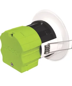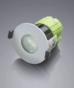 Integrated LED fire rated downlight. Fully dimmable with interchangeable bezel. Supplied with white twist and lock bezel.