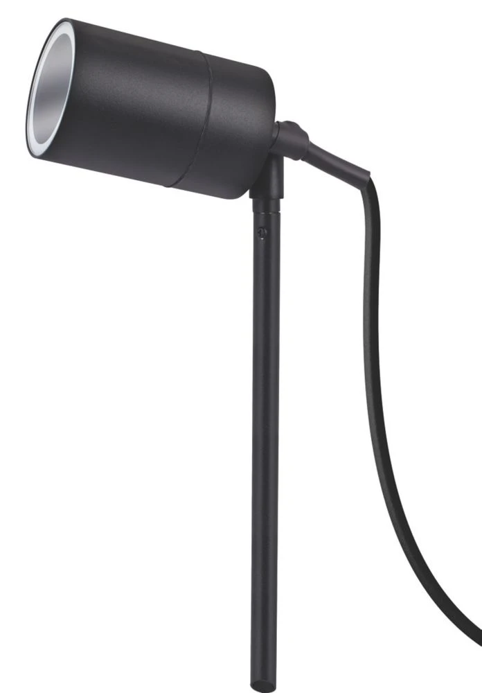 Decorative outdoor ground spike light with an adjustable tilt head. Stainless steel body with a tempered glass lens. Supplied with 1.95m cable