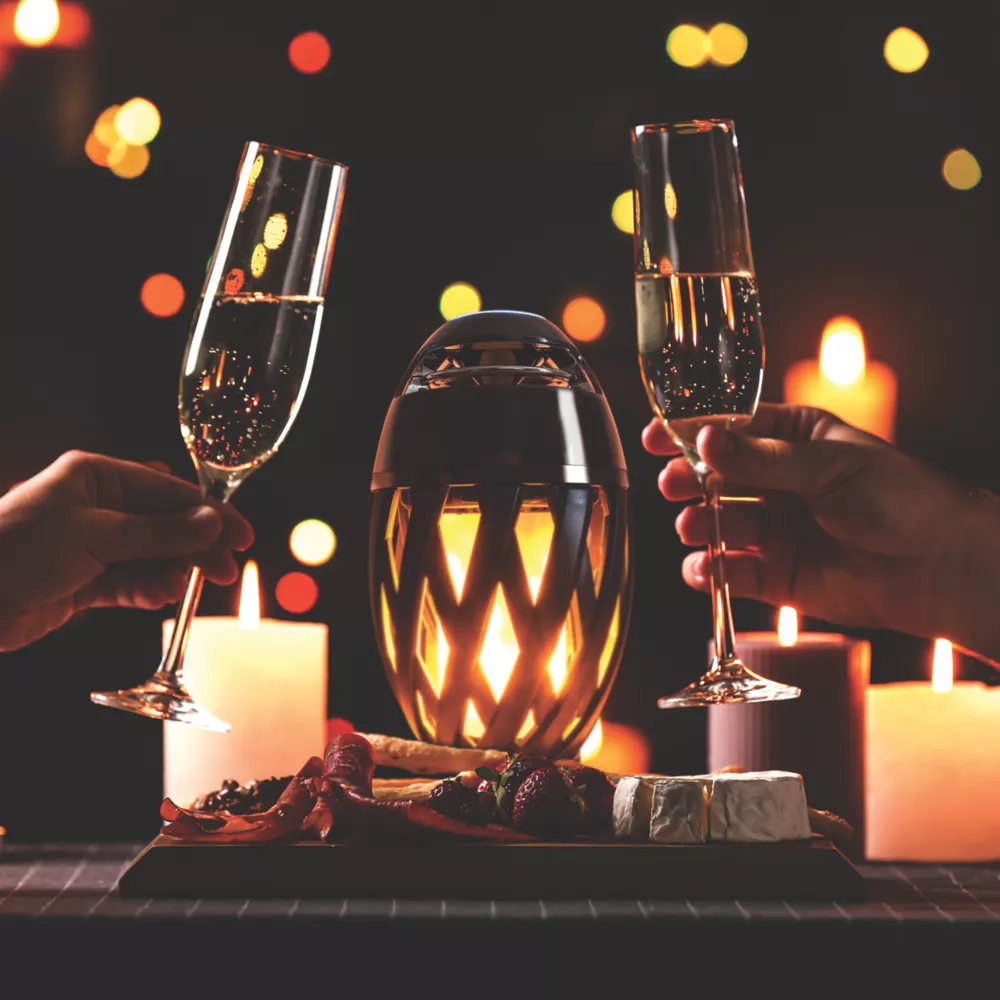 Realistic flame effect LED torch that creates the perfect ambience without hazardous fire and smoke. Polycarbonate construction. Works with Bluetooth 4.0.