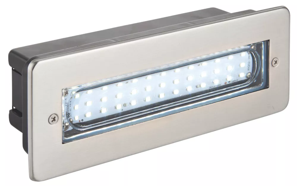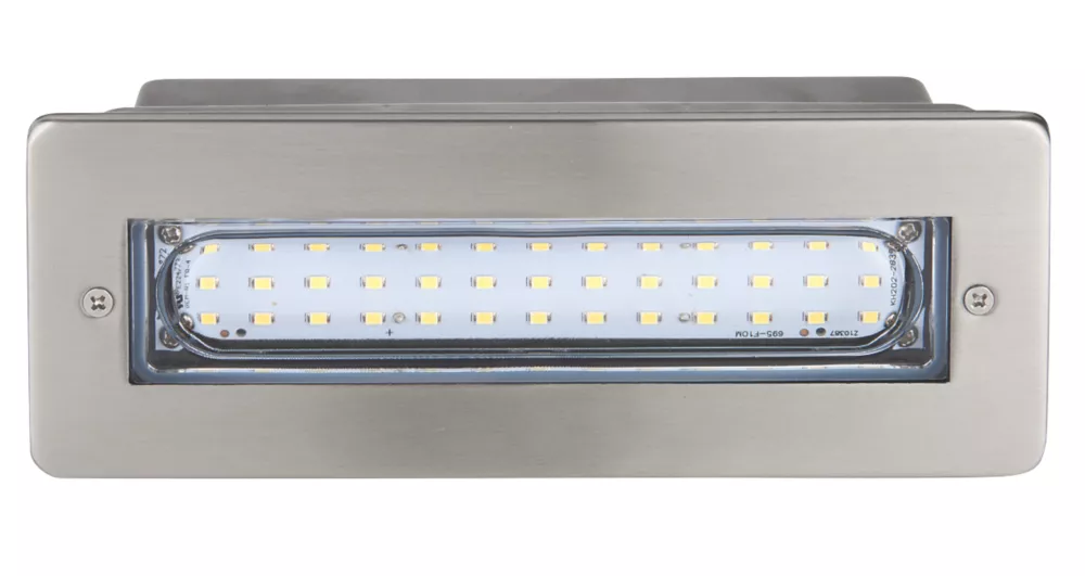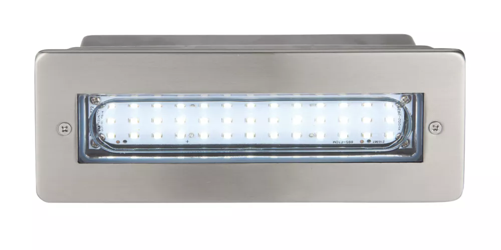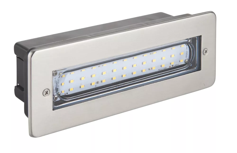 LED outdoor guide light with stainless steel finish. Emits a soft glow, ideal for lighting pathways.