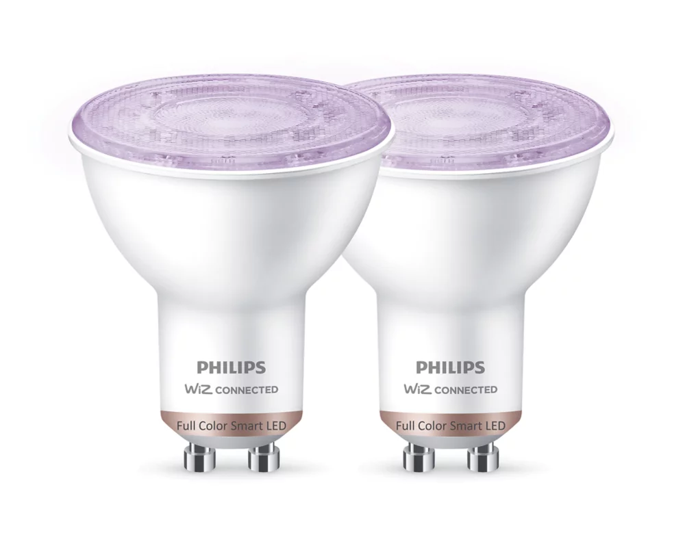 Choose from a huge colour range to bring diffused, coloured or white smart light to standard recessed fixtures and spotlights. Controlled via existing Wi-Fi with the WiZ app or by voice. Turn on, off, brighten and dim, change colour and set custom light scenes. No additional gateway required, simply plug in and download the app.