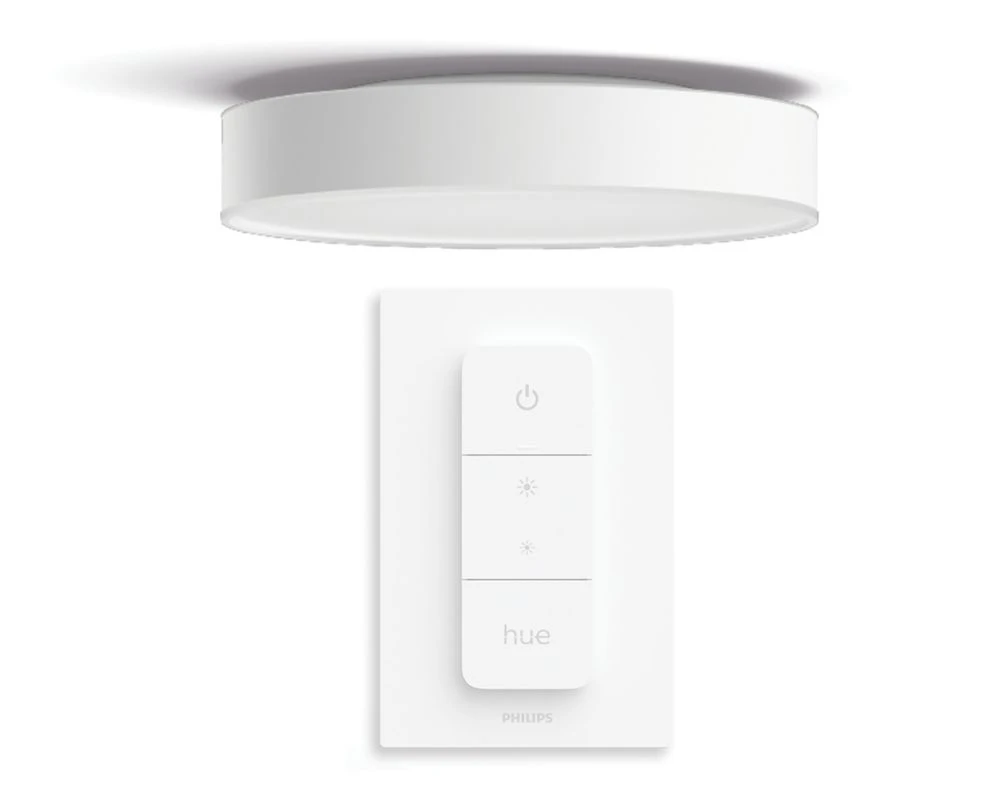Extra-large ceiling light, suitable for illuminating wide areas, such as combination living/dining rooms. Casts a ring of warm-to-cool white light against the ceiling and a powerful glow below. Control via Philips Hue app and set up hands-free voice control. Add a Hue Bridge (sold separately) for additional features.