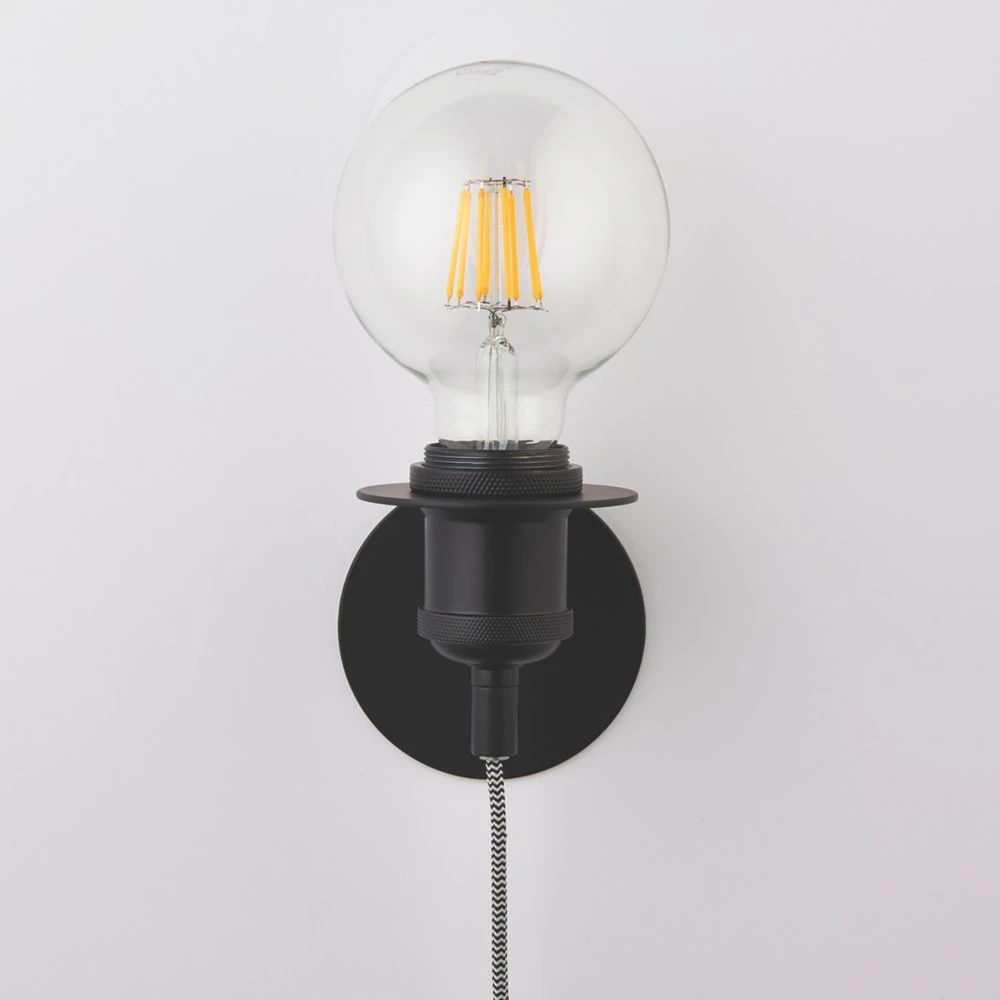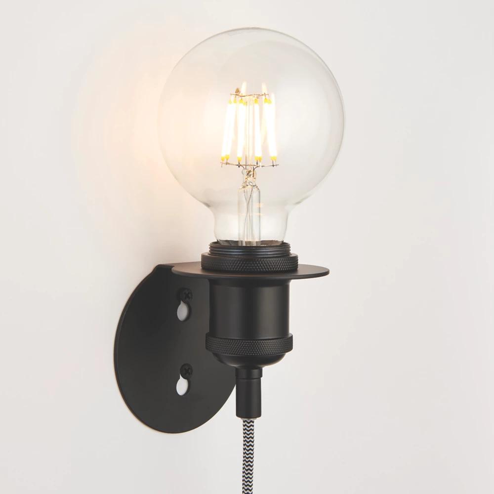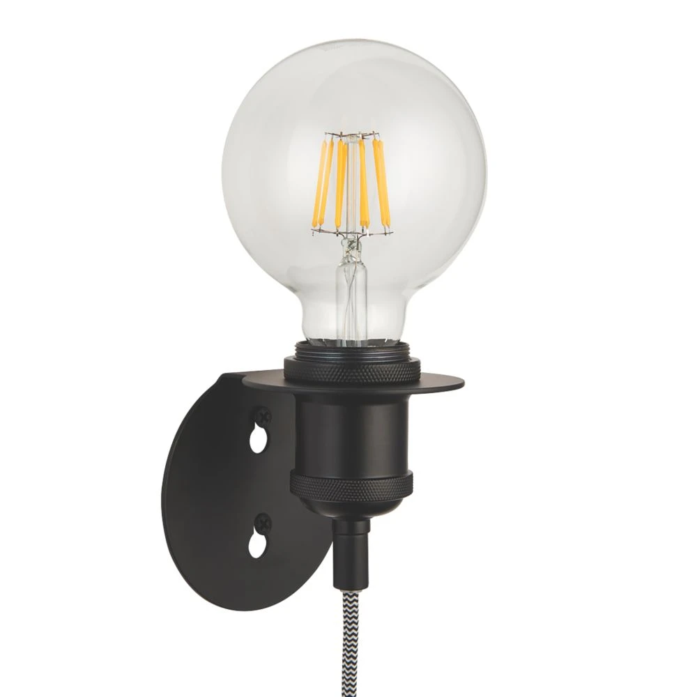 No wiring required, simply fix to the wall and plug in to light. Features an easy reach on/off cable switch. Ideal for rental properties. Steel body, decorative design.