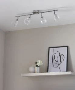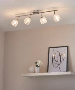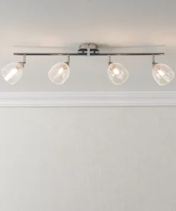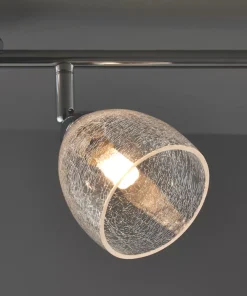 Spotlight with chrome effect plating and clear crackle glass. Compatible with LED lamps. Dimmable when fitted with dimmable bulbs. Supplied with 4 x 2.5W warm white G9 LED capsules.