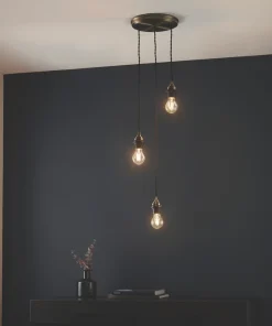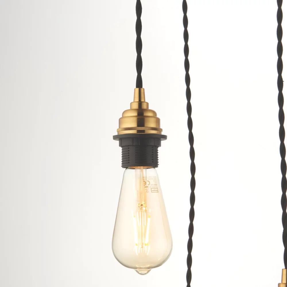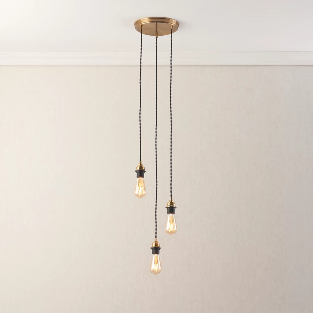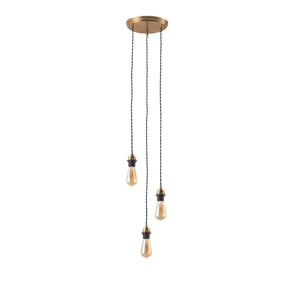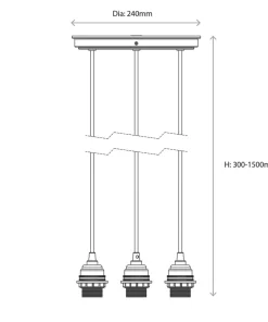 Versatile 3-light cable set pendant suited to a range of interior designs. Can be accessorised with glass or fabric shades.