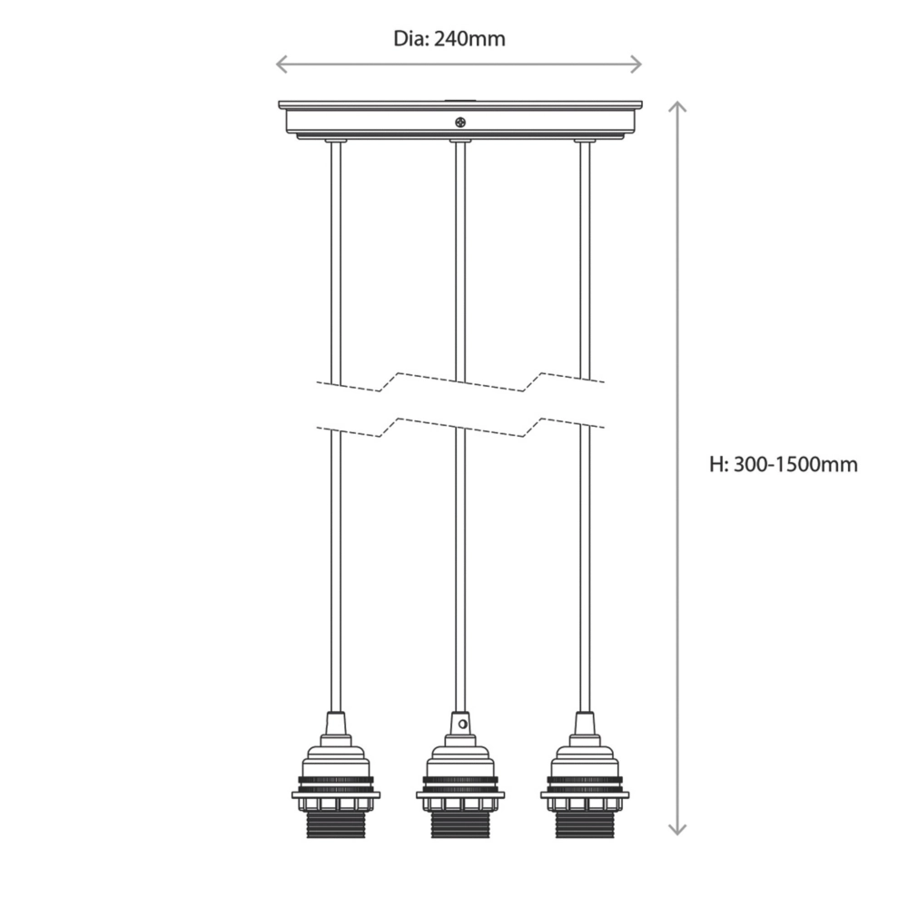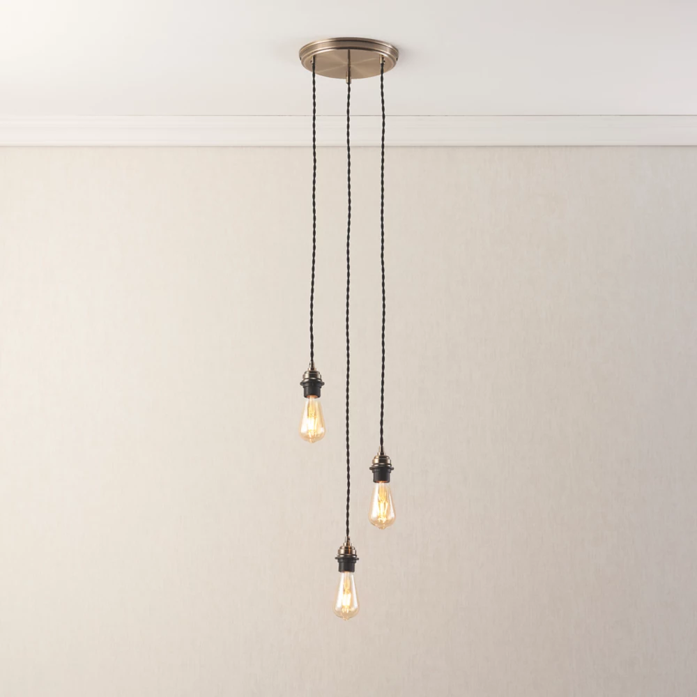 Versatile 3-light cable set pendant suited to a range of interior designs. Can be accessorised with glass or fabric shades.