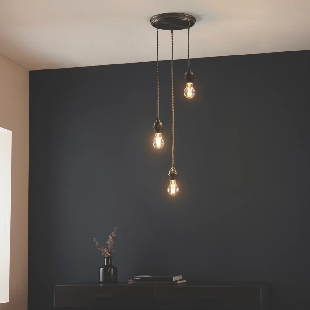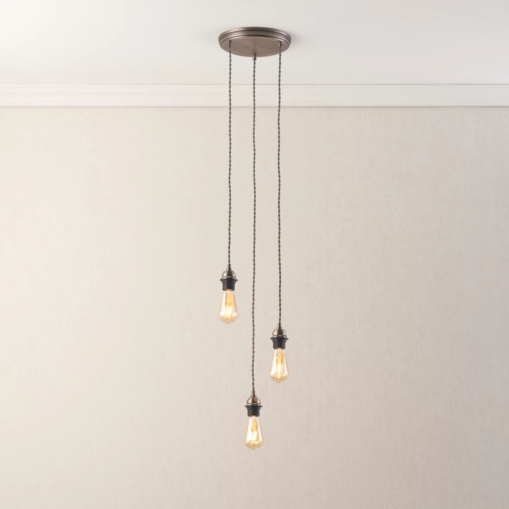 Versatile 3-light cable set pendant suited to a range of interior designs. Can be accessorised with glass or fabric shades.
