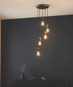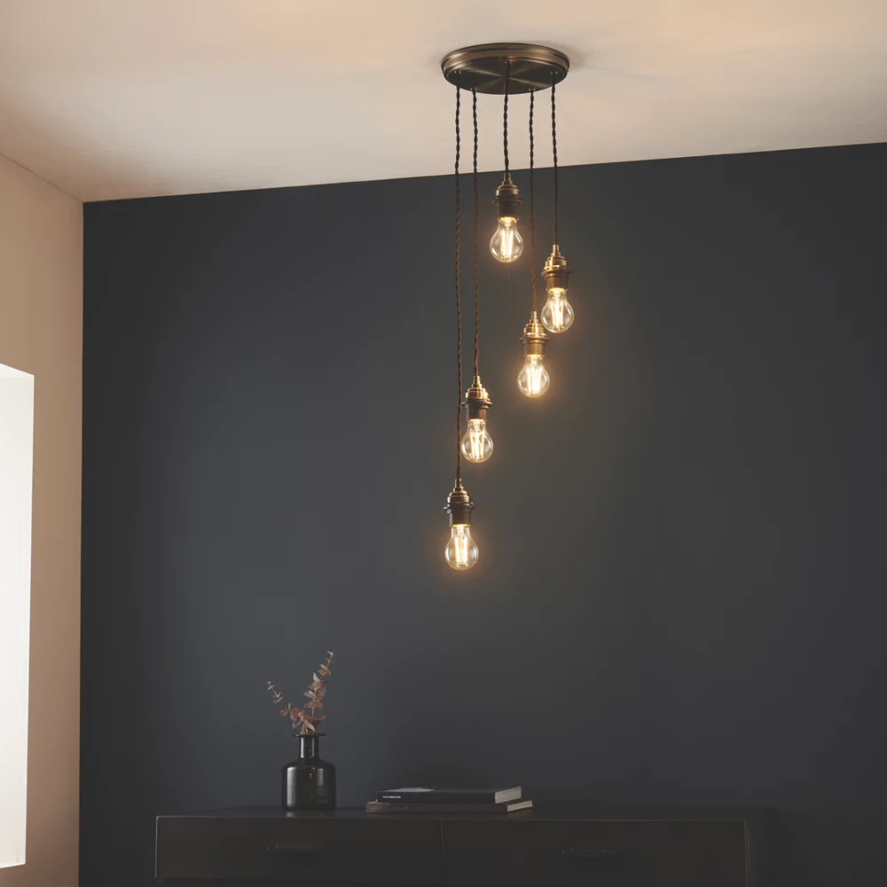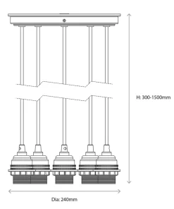 Versatile 5-light cable set pendant suited to a range of interior designs. Can be accessorised with glass or fabric shades.