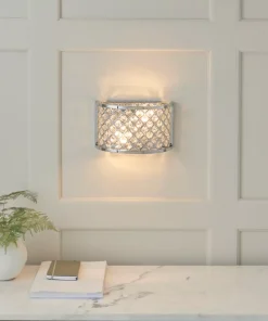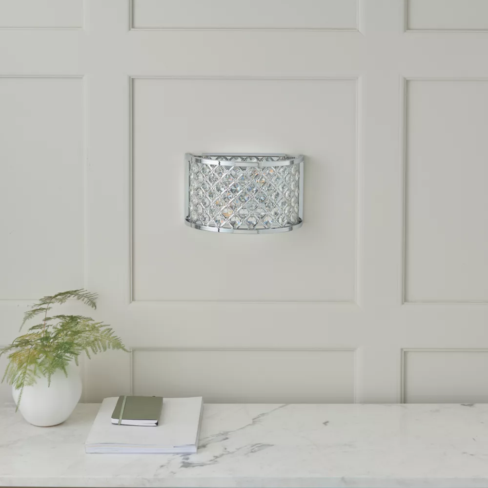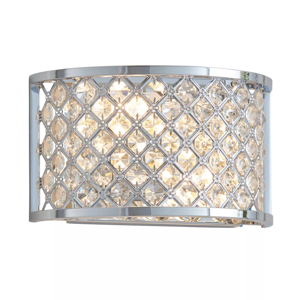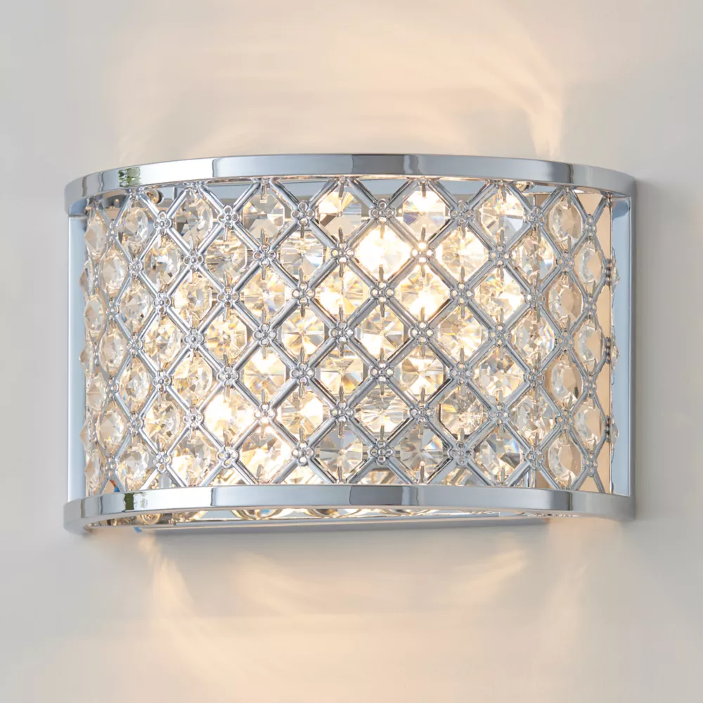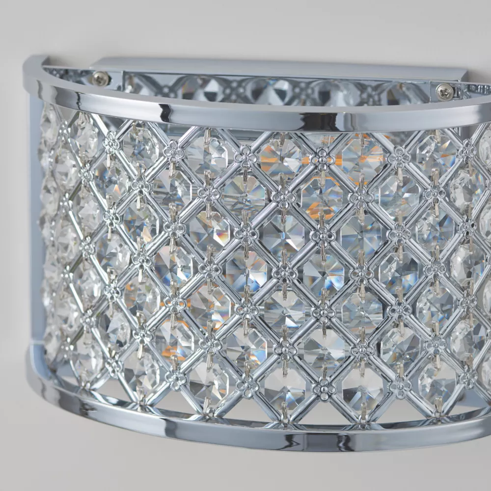 Low profile, 2-light wall fitting with an intricate jewelled design.
