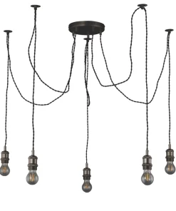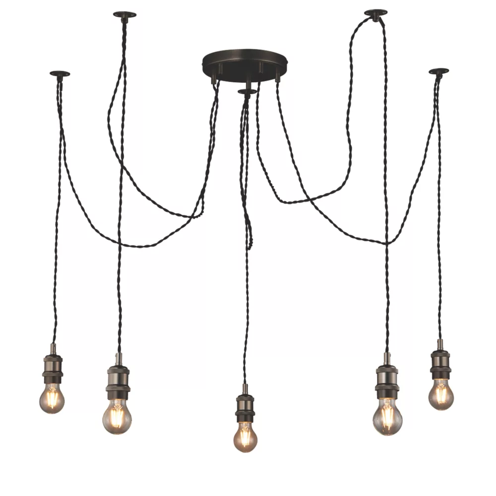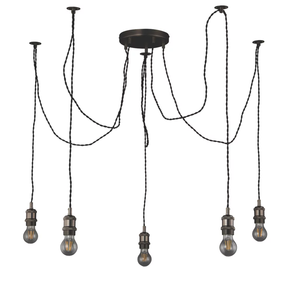 Industrial style. 5-Lghts with individual brackets for customisable positioning. Brushed bronze finish.