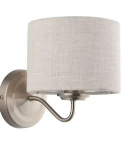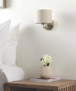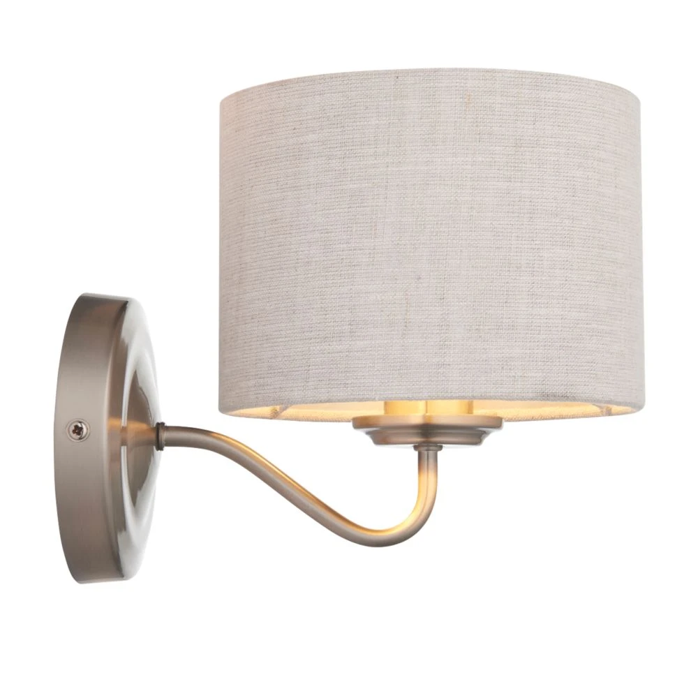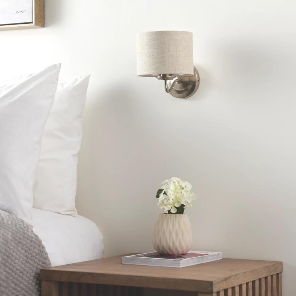 Stylish wall light with a natural linen shade. Suitable for a range of interiors.