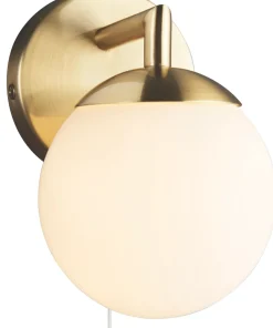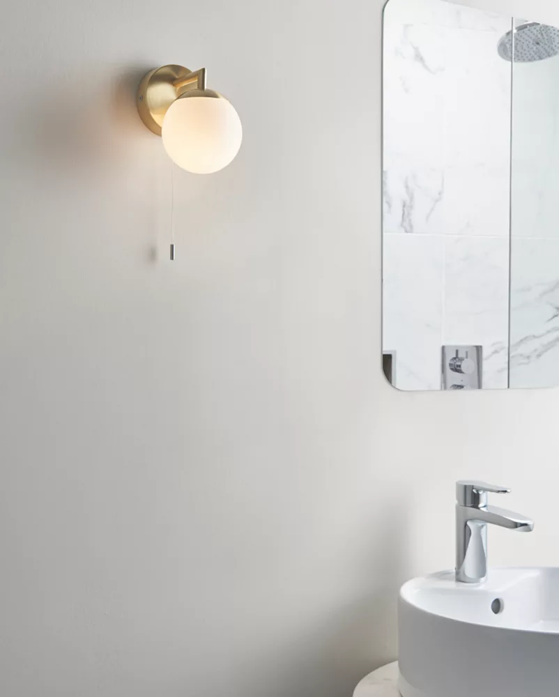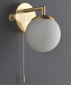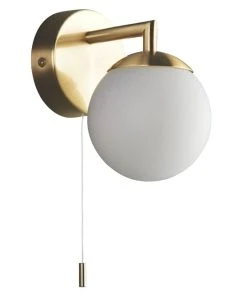 Finished in brushed brass with opal glass shade that softens light output. Easy access pull switch and integrated pull cord. Ideal for G9 LED capsules.